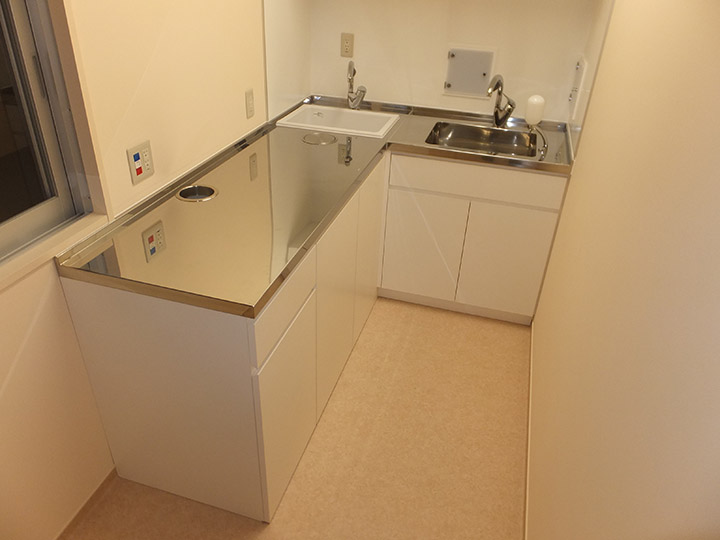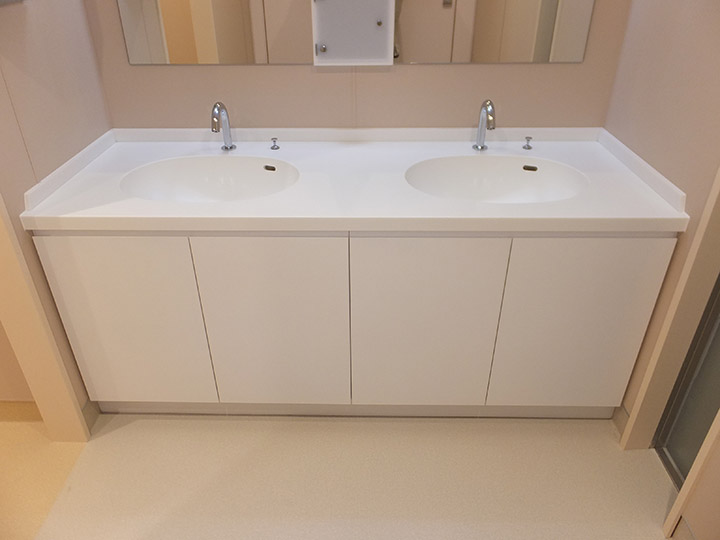 人工大理石、メラミン化粧板、SUS